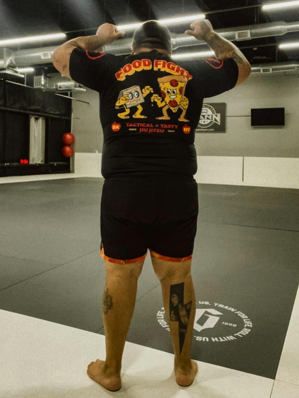 Grab a Pizza the Action in this black rash guard. Features signature Food Fight logo on the front, bold grappling illustration and graphic on the...