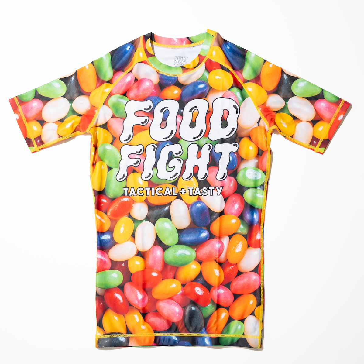 Stay sweet and stylish with these colorful jelly beans.Made from performance poly-spandex, this rash guard stays cool under pressure. Anti-slip elastic lines the bottom hem...